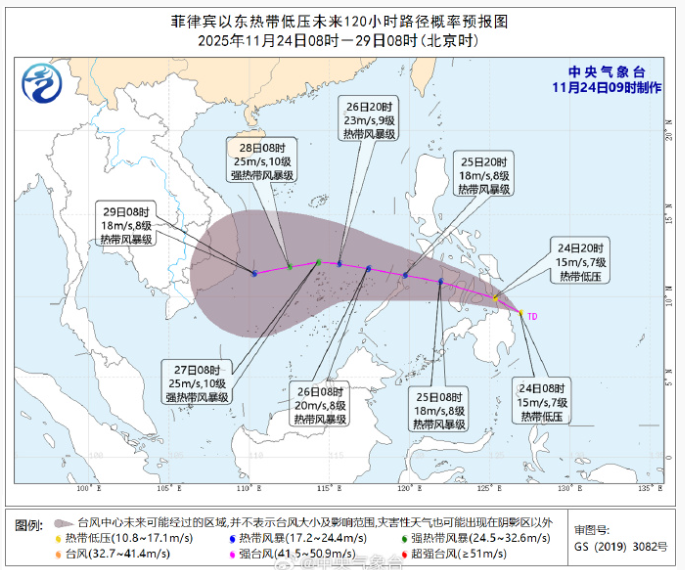 另外,菲律宾以东的热带扰动昨天上午已经加强为热带低压,昨天早上8点其中心位于菲律宾棉兰老岛东部近海海面上,中心附近最大风力7级(15米/秒),中心最低气压为1004百帕。预计该低压会以每小时15到20公里的速度向西偏北方向移动,有可能在未来24小时内加强为今年第27号台风“天琴”,并于25日夜间进入南海南部海域,强度缓慢加强,最强可达热带风暴级或强热带风暴级(23到28米/秒,9到10级)。不过预计该低压对厦门没有影响。