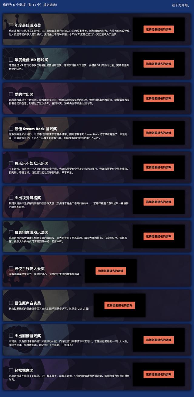 2025年Steam大奖提名投票启动 11项大奖明年1月4日公布结果