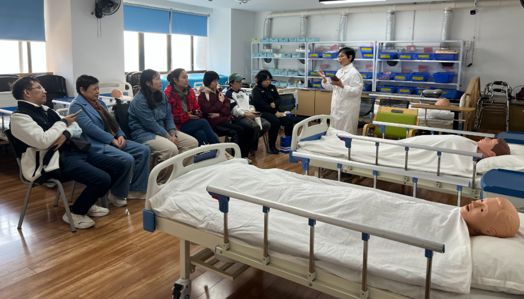 近日,曹杨新村街道开展了一场养老护理技能培训课。在护理培训模型旁,居民们正认真学习心肺复苏、人工呼吸等急救方法,以及老人关节被动活动训练等内容。这样贴近生活、侧重实操的课堂,正是街道为居民量身打造的技能提升现场。