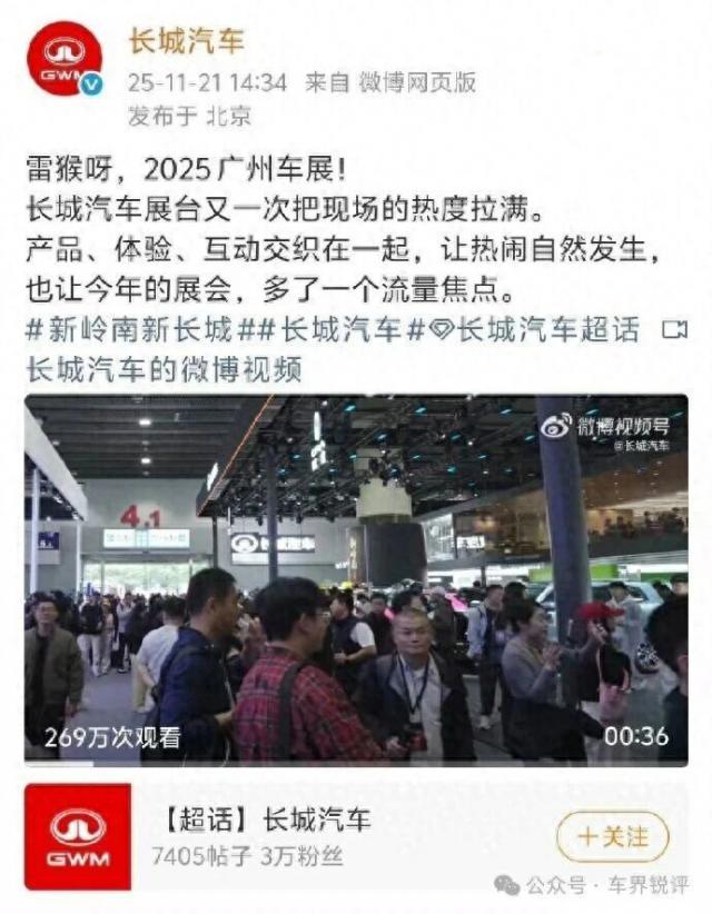 事情源于2025广州车展媒体日,长城汽车发布了带有"雷猴呀,2025广州车展"字样的内容,然而不到24小时便紧急撤下。这一删帖操作迅速登上热搜,引发网友诸多猜测。