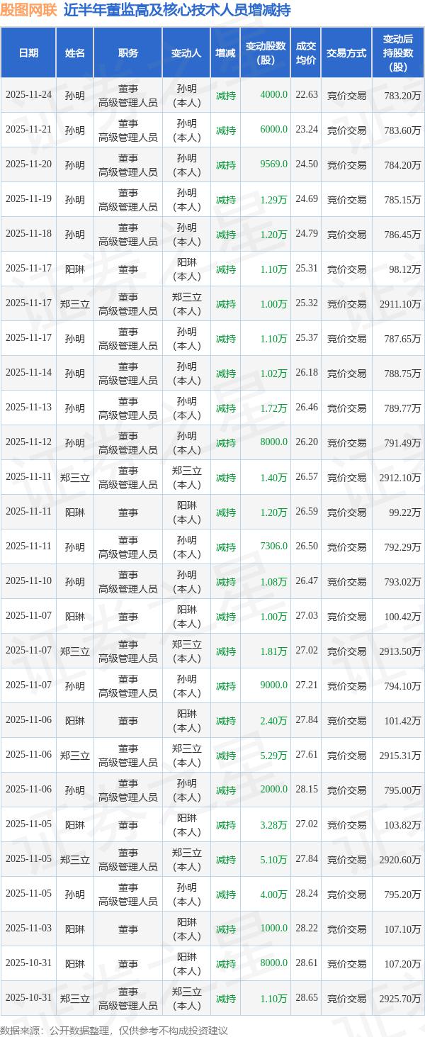 殷图网联近半年时间里,董监高及核心技术人员的增减持具体情况如下: