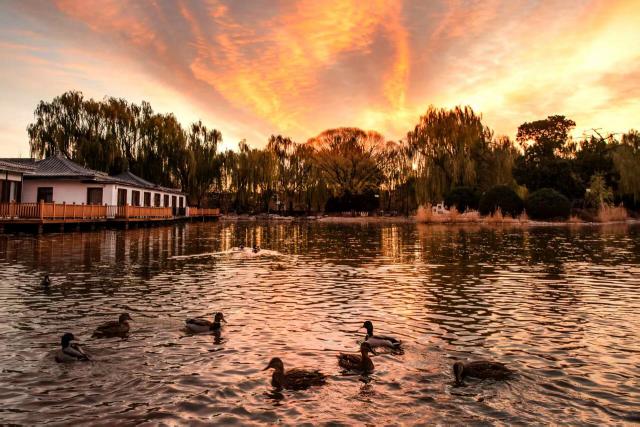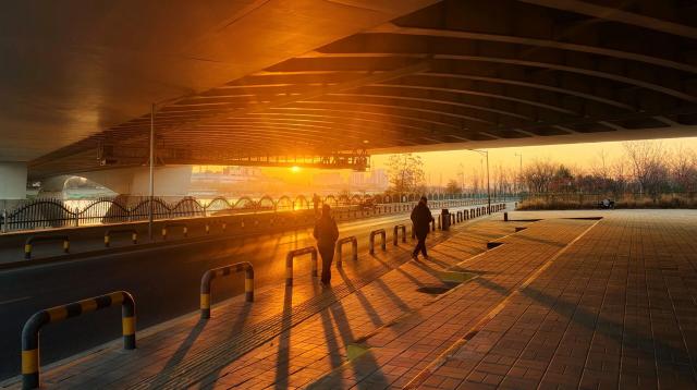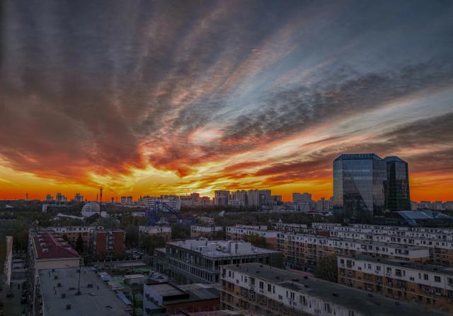 告别秋日,迎来冬韵,石景山的清晨又换上了崭新的容颜。当朝阳还未完全跃出天际,天边的朝霞已将整片天空晕染成炽热的火红,宛如大自然以最绚烂的笔触,开启新一天的序章。