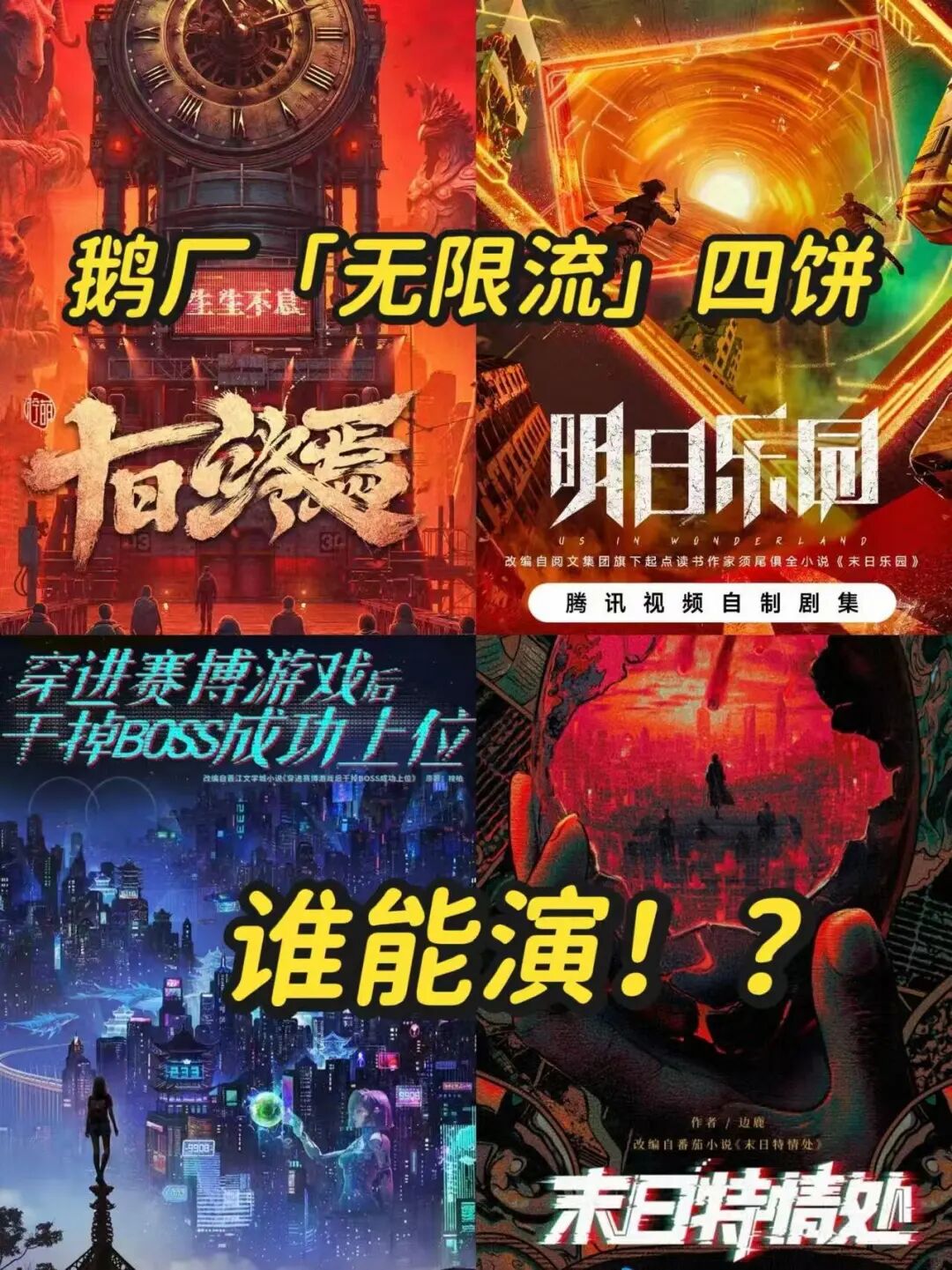 尤其是腾讯视频今年发布的大剧片单中,《十日终焉》《明日乐园》《穿进赛博游戏后干掉BOSS成功上位》《末日特情处》同时亮相,让人不难意识到,平台已想将无限流打造成自家的类型标志。