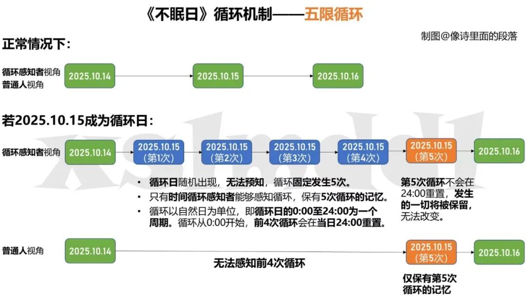 比如《不眠日》,编剧将循环设定为客观存在、次数固定的硬规则,观众从第一集就知道每轮循环“只有五次”。这种简化让规则清晰,叙事明确,观众易跟随剧情产生紧张感与参与感。