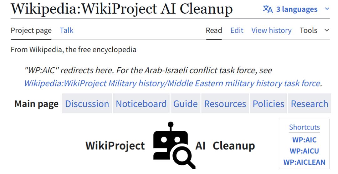 项目链接:https://en.wikipedia.org/wiki/Wikipedia:WikiProject_AI_Cleanup