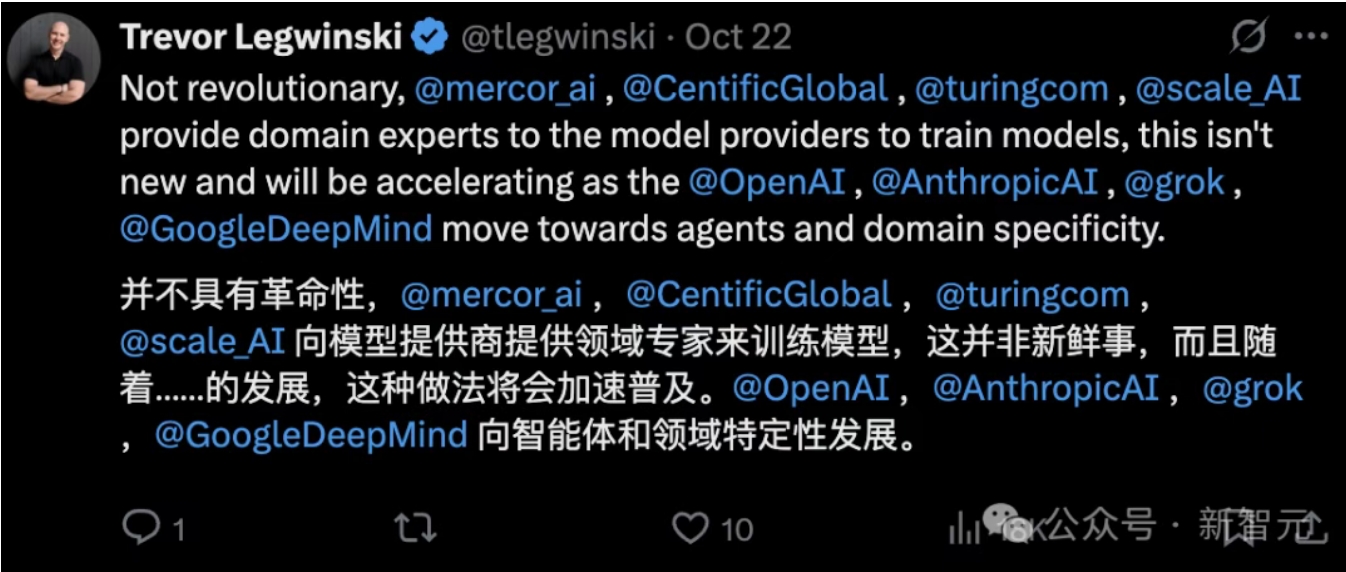 xAI扩容导师团队的核心原因,正是看到专业导师创造的巨大价值。其「AI金融导师—卖方」岗位明确要求招募交易员、投行家等卖方金融专家,通过高质量数据标注和定制化输入增强模型能力。OpenAI的Mercury计划、Scale AI的金融研究员岗位、Mercor的投行专家招聘、Labelbox旗下Alignerr的金融分析AI训练师职位,均是这一趋势的体现。这些岗位时薪在15-150美元之间,BigML前首席运营官Trevor Legwinski认为,这种招募行业专家参与训练的模式并不新鲜,未来将在各行业加速普及。