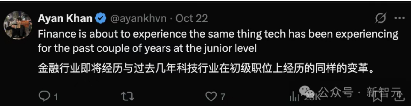 消息一出引发网友热议:「银行家带头裁减银行岗位」「初级银行家的职场危机来了!」也有网友调侃:「AI可能比一半华尔街人更早通过CFA认证」,甚至预言AI未来会「用人类教的知识反超导师」。无论如何,金融行业已置身AI变革浪潮,有观点认为其将重演科技行业初级岗位的变革历程,每个人都需在变革中重新定位。