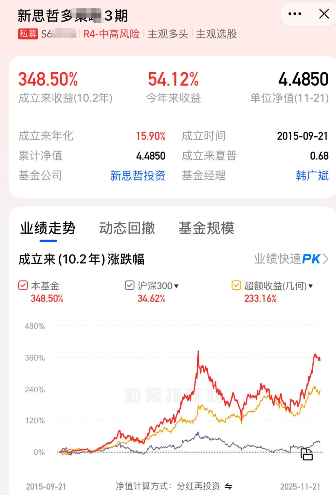 从中基协官网可知,新思哲目前旗下有12只产品,管理规模处于50至100亿元之间。虽然规模并非行业顶尖,但业绩表现十分亮眼。私募排排网可查询到的两只产品,今年以来收益率分别为47.07%和54.12%;而一只成立满十年的产品,年化收益达15.9%,在波动较大的市场中堪称“长跑能手”。能给出如此丰厚的薪酬,显然是有实实在在的业绩作为支撑。