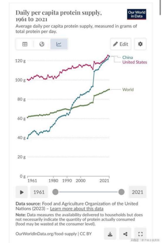 去年有一则新闻称中国人均蛋白质摄入量已超过美国,引发了广泛讨论。