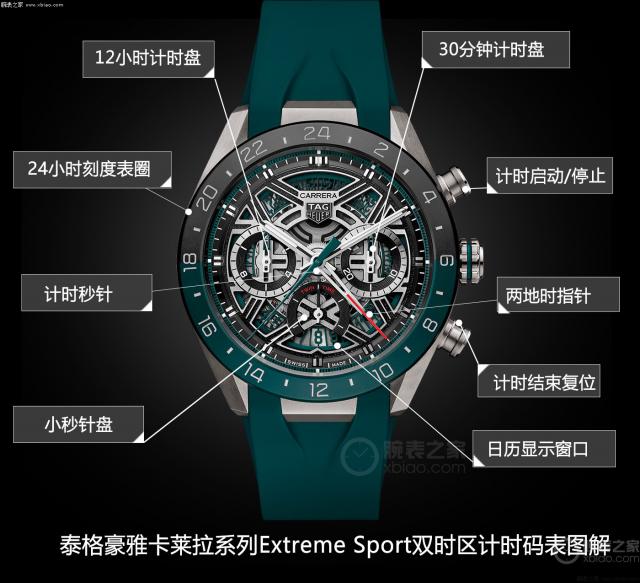 总结:以上就是泰格豪雅卡莱拉系列Extreme Sport双时区计时码表的介绍,腕表公价70900元,不限量发售。在同级别腕表中,它的核心优势在于“实用与设计的平衡”,既深度融合了两地时与计时功能且操作便捷,又通过高辨识度的绿色元素展现了卡莱拉系列的运动与赛车基因,再加上镂空盘面的加持,进一步提升了产品竞争力。在7万元价位的进阶表款中,其内在性能与外在设计表现都很突出。目前新款腕表已陆续到店,感兴趣的表友可前往泰格豪雅线下店铺,亲身体验这款卡莱拉系列Extreme Sport首款双时区腕表的实际表现。