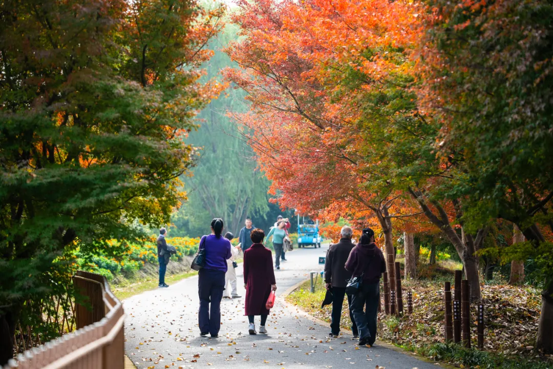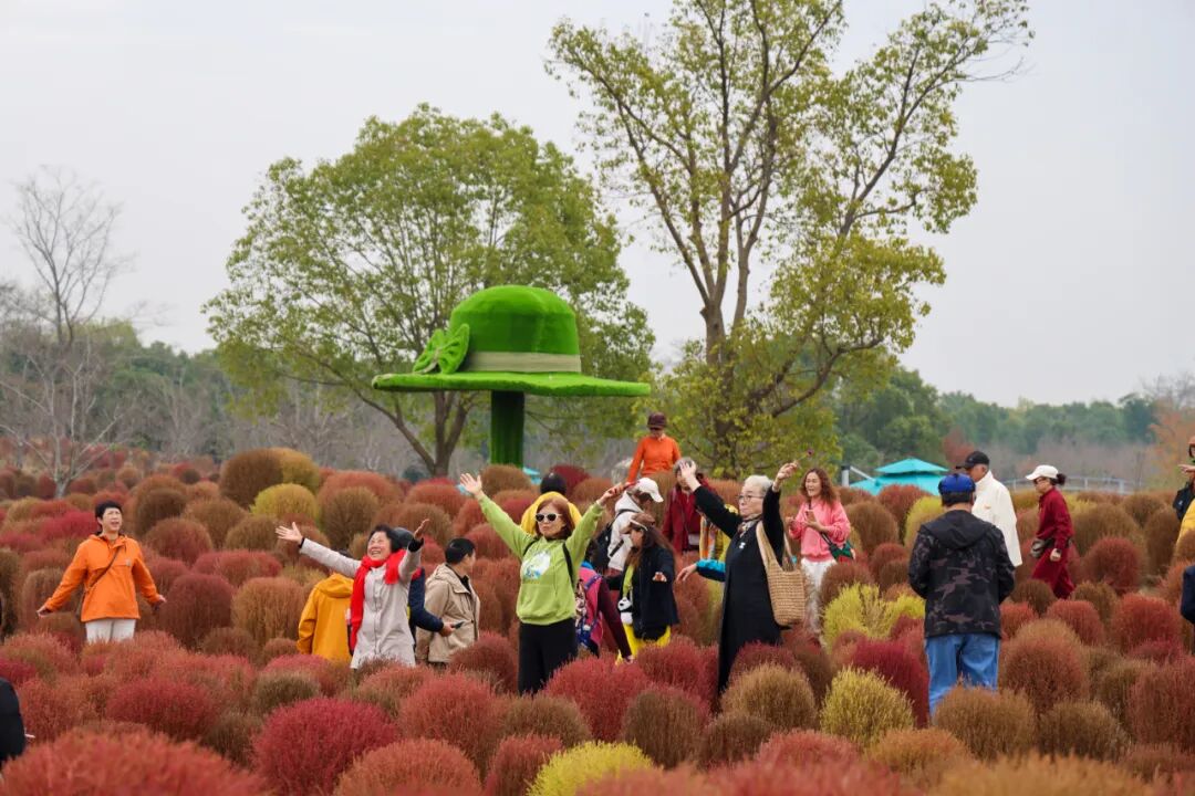 眼下,花开海上生态园内的秋色叶树种已悄然进入变色期。枫树、地肤、细叶芒等各类观赏性植物色彩交织,勾勒出层次丰富的深秋画卷。