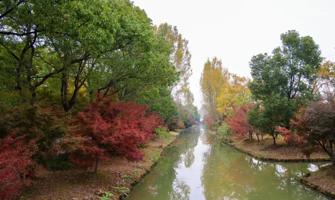 金山花开海上生态园枫叶正红,秋景如画不容错过
