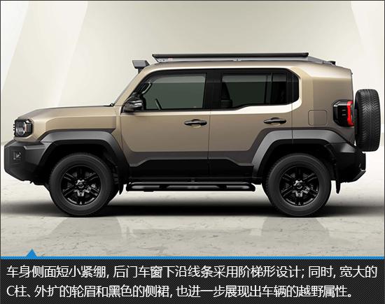 车身尺寸上,新车长宽高分别为4575mm×1855mm×1960mm,轴距达2580mm,处于小型SUV与紧凑型SUV之间。对于侧重通过性与可玩性的越野车而言,车身并非越大越优,需在空间与灵活性间找到平衡,而这款车的尺寸恰好满足了这一需求。