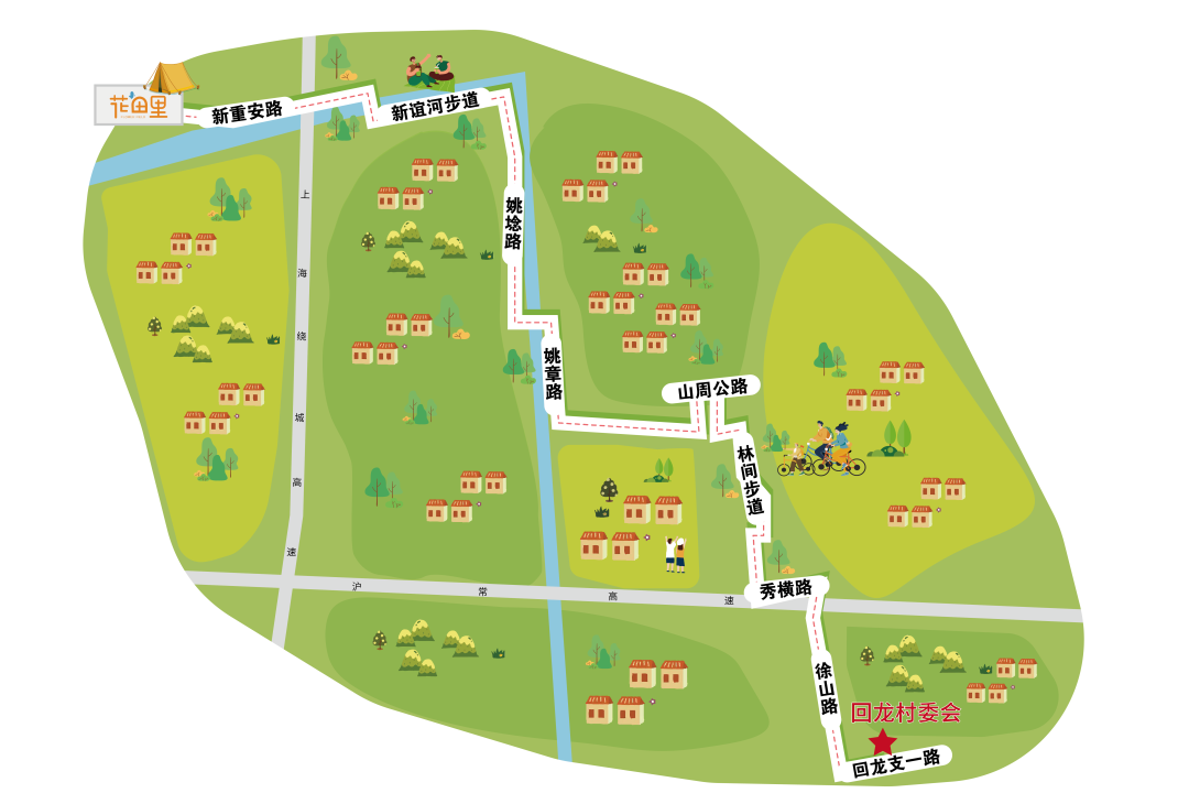 姚埝路→新谊河步道→新重安路