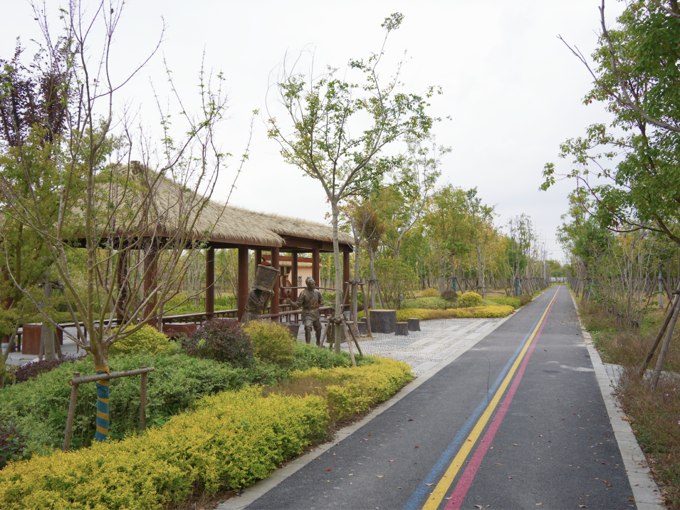 沿着徐山路前行,耳边是旺塔泾潺潺的流水声,路旁生态防护林植被繁茂,泛黄的树叶在风中沙沙作响。抬眼望去,几只白鹭悠然飞过。漫步在这条乡间小路上,脚步不自觉地轻快起来,随手按下快门,定格的都是“岁月静好”的画面。