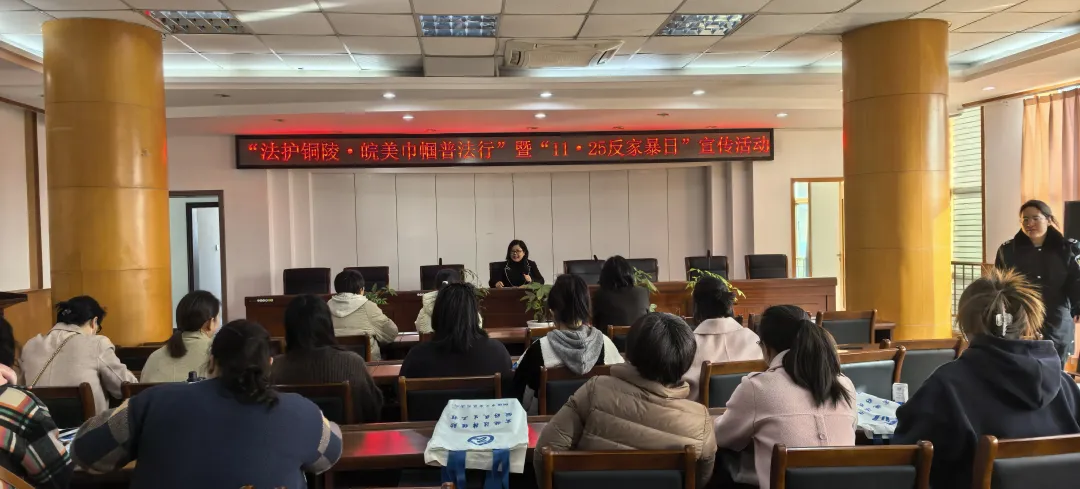 为进一步增强义安区女性群体的反家暴观念,巩固家庭和谐稳定的防线,11月25日上午,区妇联携手区司法局,联合五松镇妇联,在区反家暴联动工作站共同举办了“法护铜陵·皖美巾帼普法行”暨“11·25反家暴日”宣传活动。