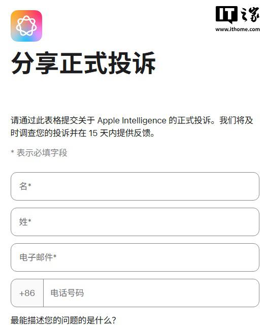 近日,这一进程出现了新的动向——苹果官网新推出了一份针对Apple Intelligence的用户反馈表单,其中手机号填写栏明确要求使用中国大陆地区的+86电话号码。