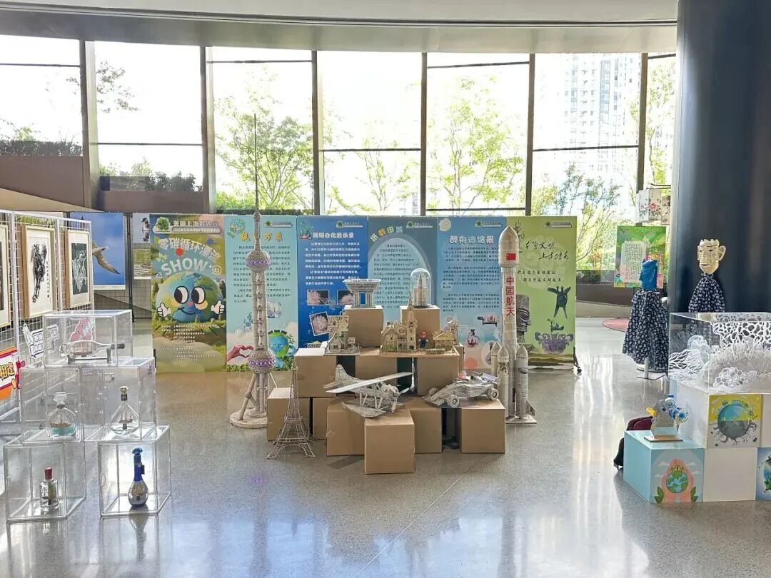 在2025“美丽城市”科普行动的作品展示区,以可持续再生创意作品巡展为重点,区科协联合相关单位在城市公共区域设立了零碳科普展示窗口。在第三届上海生态环保艺术节期间,“零碳循环漂流show”集中展示了多件融合非遗技艺与环保科技的艺术装置。其中,有高中生从传统纹样中汲取灵感,在废弃塑料瓶底绘制缠枝莲、宝相花等图案,组合成具有光影效果的立体装饰;还有以三星堆文化为创意来源,利用水桶、塑料瓶等废弃物制作出青铜器造型的作品,实现了传统与环保的创意融合。据统计,2025年全年在西岸漩心、东方明珠塔等地标场所举办的8场主题展览,累计服务公众约5万人次。