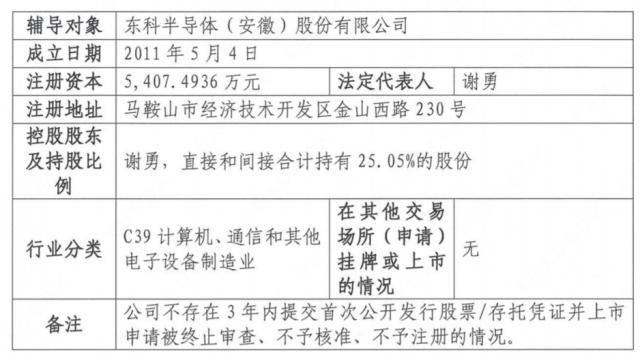 瑞财经 王敏 11月24日,东科半导体(安徽)股份有限公司(简称“东科半导体”)正式在安徽证监局完成IPO辅导备案手续,此次辅导工作由东方证券负责推进。