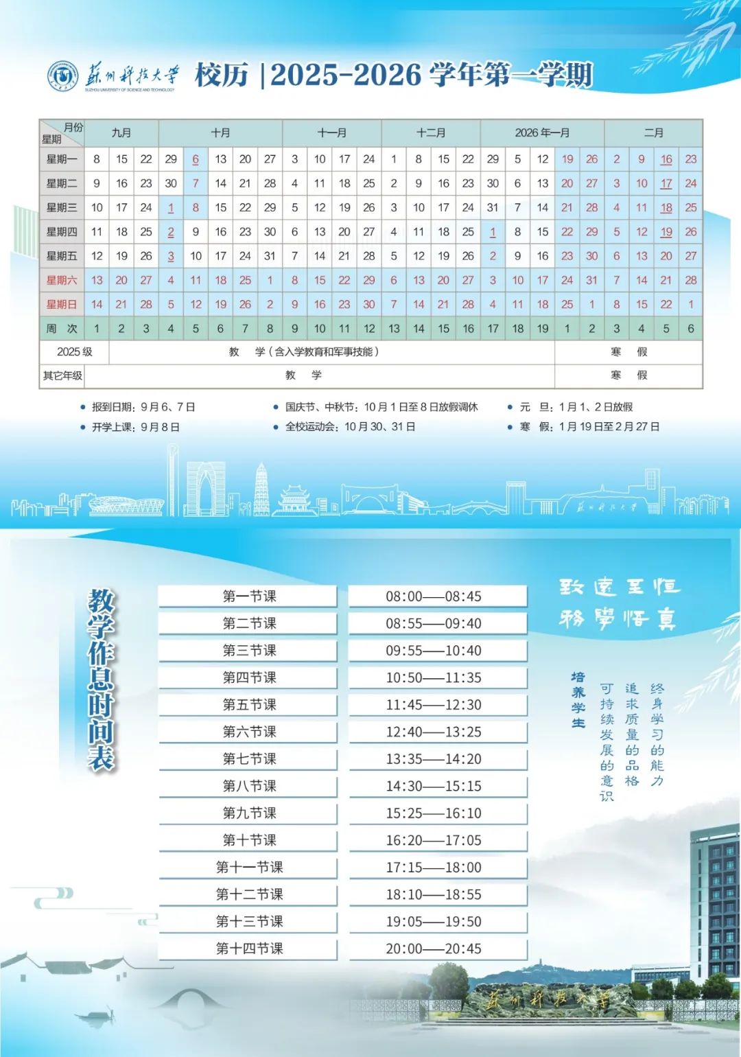 苏州科技大学:2026年1月19日至2月27日放寒假