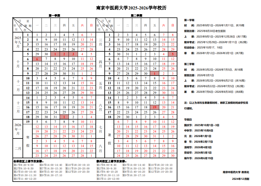 南京中医药大学:2026年1月12日至3月1日放寒假