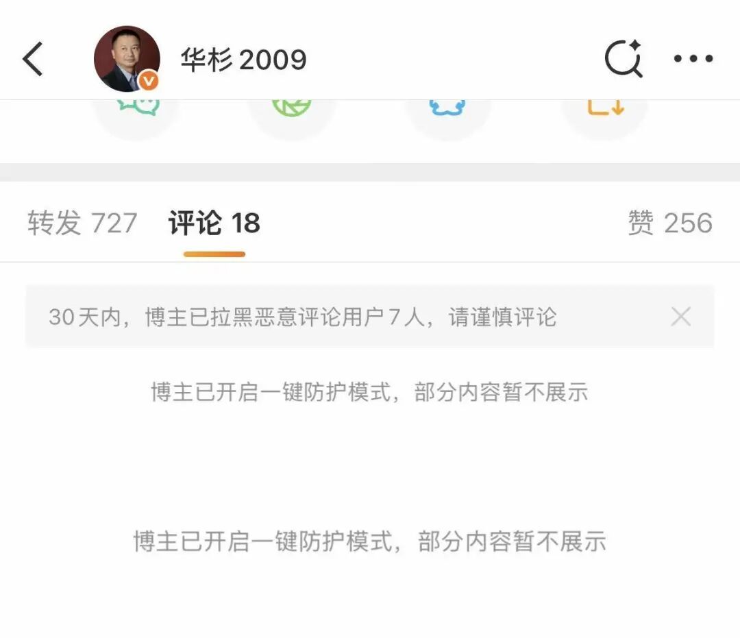 三言发现,在被罗永浩回怼后,华与华的华杉已开启微博一键防护功能,该功能会限制未关注者的评论、转发等操作。