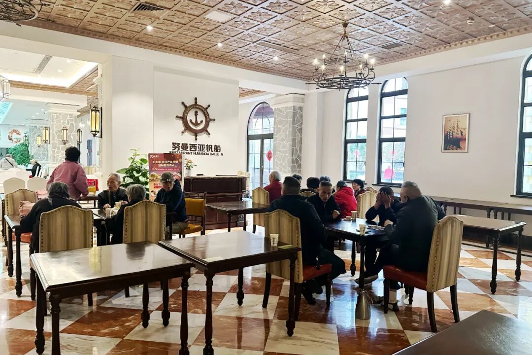 佘山国家旅游度假区内的巴塞罗娜国际度假酒店里,卡拉OK包间飘出欢快歌声,不少客房门敞开着,银发客人们围坐闲聊,亲切的招呼与笑声交织。这是11月17日下午酒店里的日常场景。