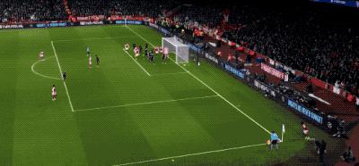 第69分钟,于帕梅卡诺传球被赖斯抢断,埃泽发起进攻,替补登场的卡拉菲奥里首次触球便送出助攻,另一名替补马杜埃凯完成破门。