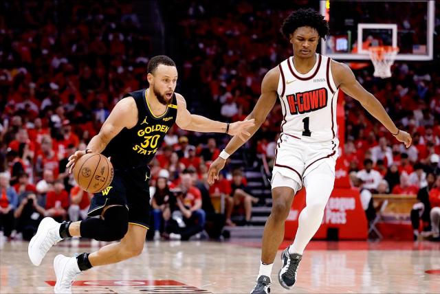当然,比赛不可能全程依赖快攻,落入阵地战后如何破解联防?火箭虽无杜兰特这类罚球线持球强点,但申京与小贾可站罚球线位置,不过小贾并不擅长支配球,申京拿球时后卫也未必能顺利传球。一个可行的思路是:为谢波德设置双掩护,使其绕出后持球投射三分。若勇士联防上线收缩,谢波德的空位三分若能打开局面,联防体系自然会出现破绽。若此策略效果不佳,可派阿门强行冲击——他持球突破联防,即便未能得分也可能造成犯规,从而打乱勇士的防守节奏。