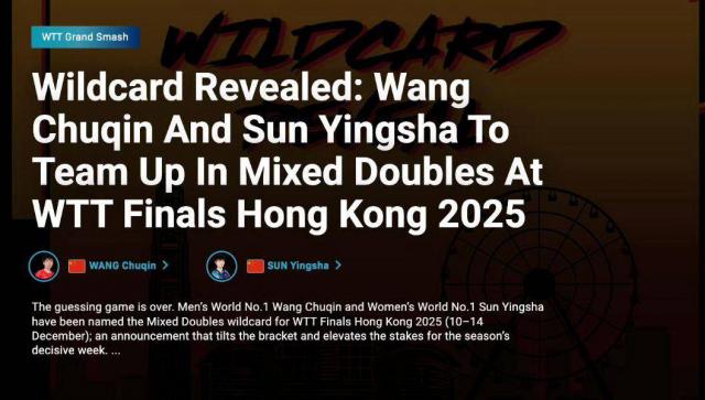 WTT官宣:王楚钦孙颖莎获总决赛混双外卡,国乒混双双线出击引期待与担忧