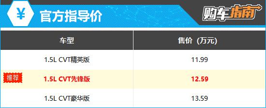 在售3款车型中,首推1.5L CVT先锋版。相比入门版,它在主动安全和驾驶功能上提升明显,增加主动刹车/主动安全系统、全速自适应巡航、车道保持辅助系统等,仅贵0.6万元,性价比突出。