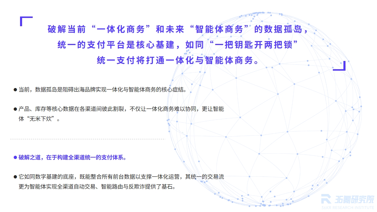 无论是实现渠道协同的一体化商务,还是构建情景感知的智能体系统,都离不开全维度数据的整合与贯通。其中,支付数据作为连接交易、用户与场景的核心枢纽,是打通全链路的关键环节。通过构建“一体化与智能化支付”体系,品牌可将支付环节从单纯的交易端点升级为数据中枢与策略节点,为业务一体化与决策智能化奠定坚实基础。