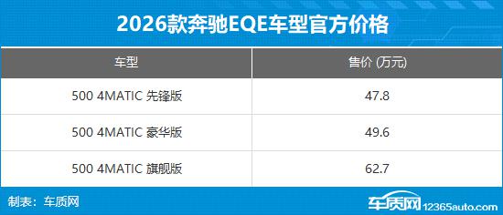 2026款奔驰EQE正式上市 售价区间47.8万至62.7万元