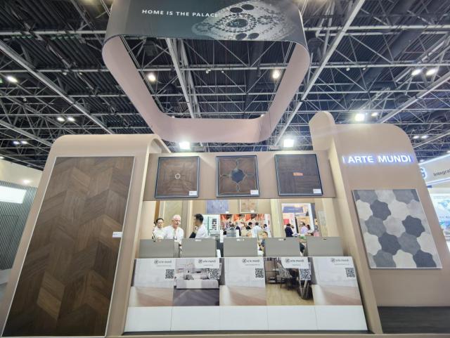 迪拜建材展作为中东乃至全球极具影响力的建材行业盛会,不仅是展示行业创新成果的核心窗口,更是连接国际市场、促进全球商贸合作的重要桥梁。此次参展,书香门地集团精心打造了兼具东方韵味与现代奢雅感的展位空间,将「arte mundi」艺术地板系列的独特质感与艺术张力完美呈现,营造出沉浸式的美学体验空间,吸引了众多国际采购商、行业伙伴的驻足关注与深度交流。