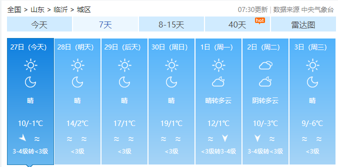 临沂未来几天的天气