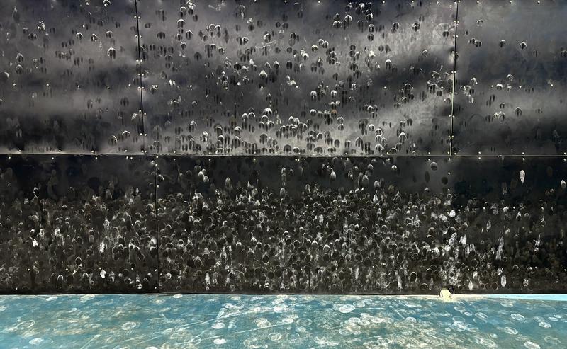 布满铅球斑点的墙。新华社记者 王沁鸥 摄