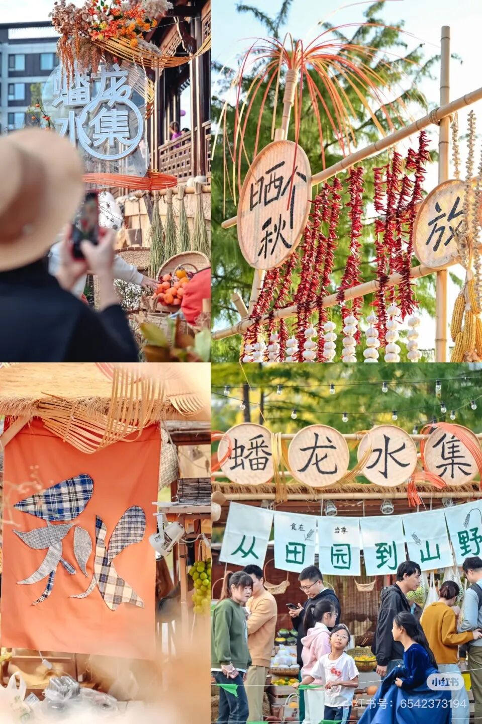 蟠龙天地的蟠龙水集,则找到了秋天的人文母题——丰收。辣椒玉米堆成的丰收镇,藤编非遗沉淀的慢时光,将“收获”这一古老情绪重新带回城市。