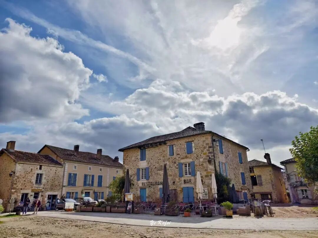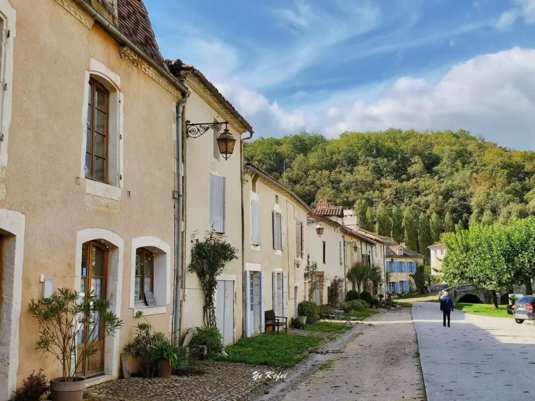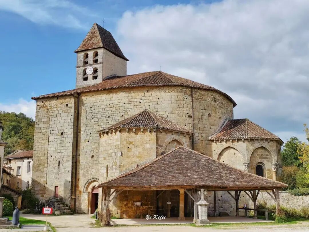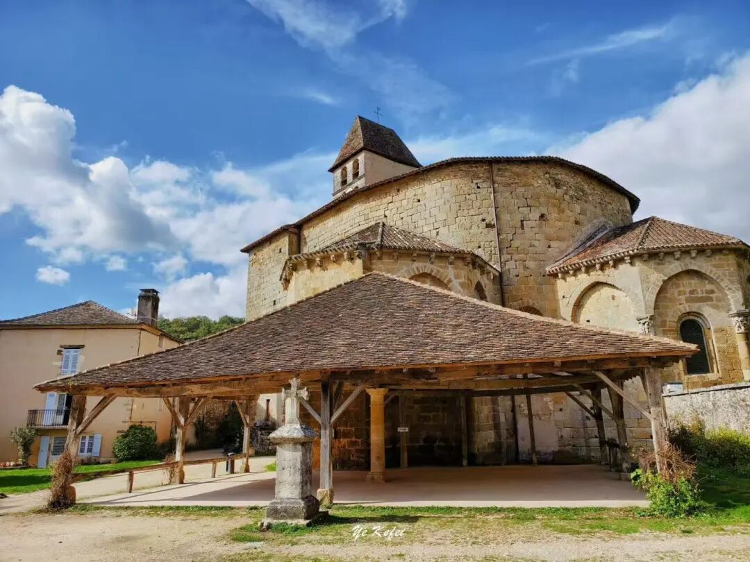 沿着那条沙土路步入小镇,古朴广场上矗立着中世纪民居:土黄色砂岩房屋、红棕色瓦顶、鹅卵石街道,还有曾作修道院的圣让-巴蒂斯特教堂,让人恍若穿越回中世纪。教堂由1081年任佩里格主教的雷诺·德·蒂维尔创立,现存建筑主要整修于15至17世纪,早在1862年就被法国政府列为历史古迹。