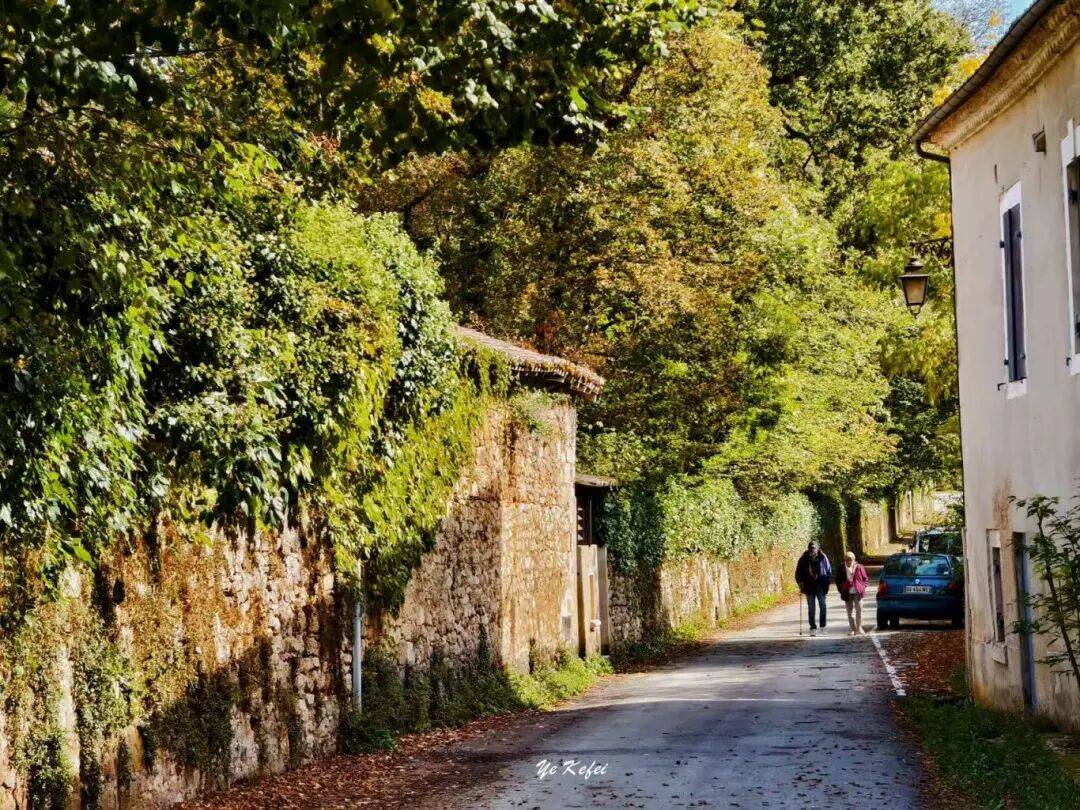 我对圣·让-德科勒(Saint-Jean-de-Côle)最深刻的印象,源于城镇旁一条沙土小路:一侧是覆着青苔与爬山虎的古老围墙,另一侧是民宅与花园围栏,阳光透过树冠洒落,两位老人缓缓踱步。法国有“最美丽村庄”评选,多尔多涅地区入选数量最多,圣·让-德科勒便是其中之一。这个面积仅12.7平方公里、人口三百余人的小镇,依偎科尔河畔,有着与世无争的幽静,堪称多尔多涅乃至法国乡村风貌的缩影。