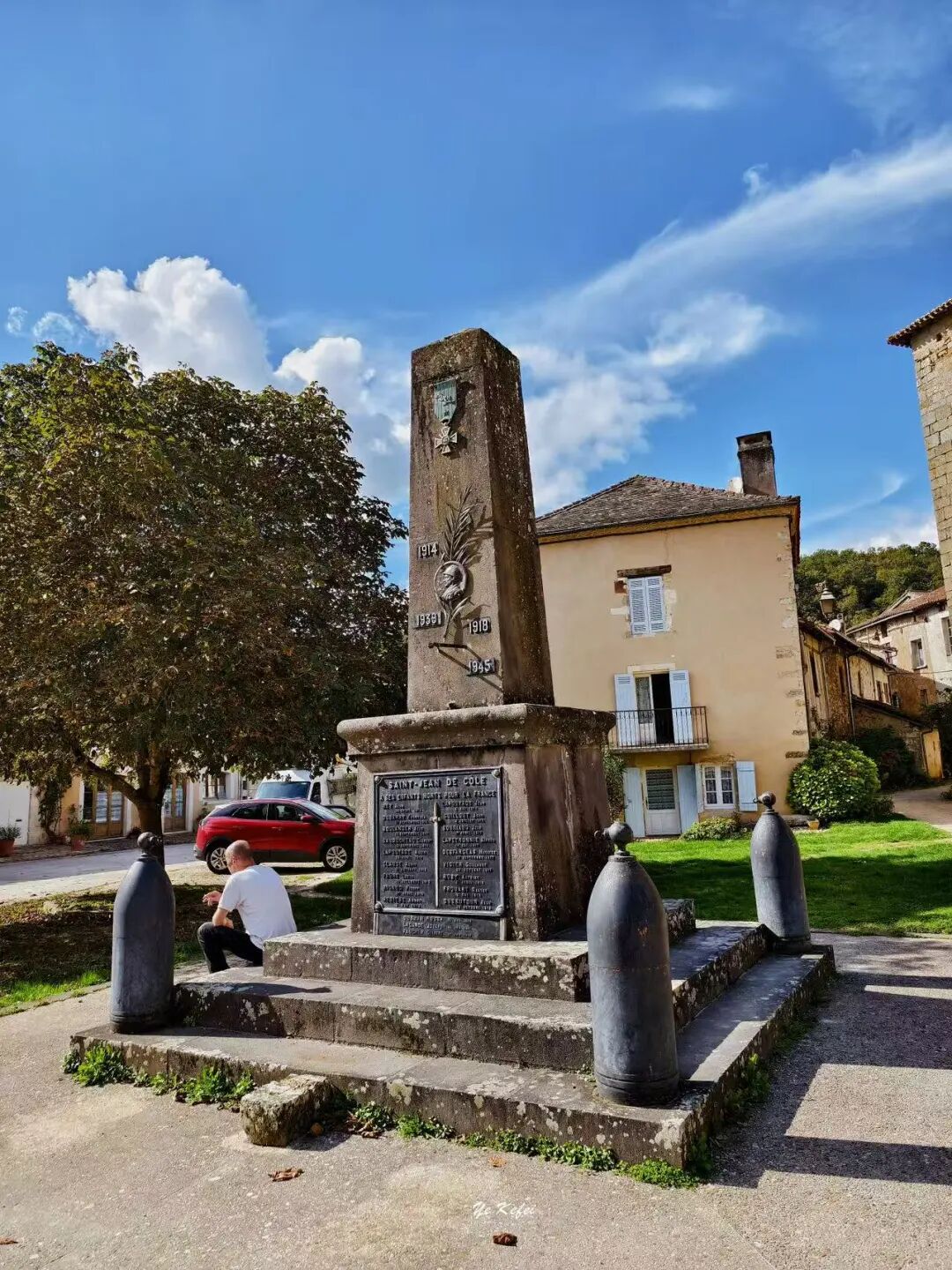 广场上还有座小型纪念碑,刻着“1914-1918”“1939-1945”字样,是两次世界大战的纪念。和法国其他地区一样,圣·让-德科勒在一战中损失惨重,二战后又遇人口外流,直到上世纪70年代人口才稳定在三百余人。近年,不少外国人因它的宁静之美选择移居。