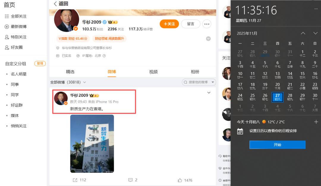截至11月27日11点左右,华杉的个人微博最新动态仍停留在26日上午。他选择“不道歉,静等对方行动”的做法,无疑将网友的关注度推向了新的高峰。