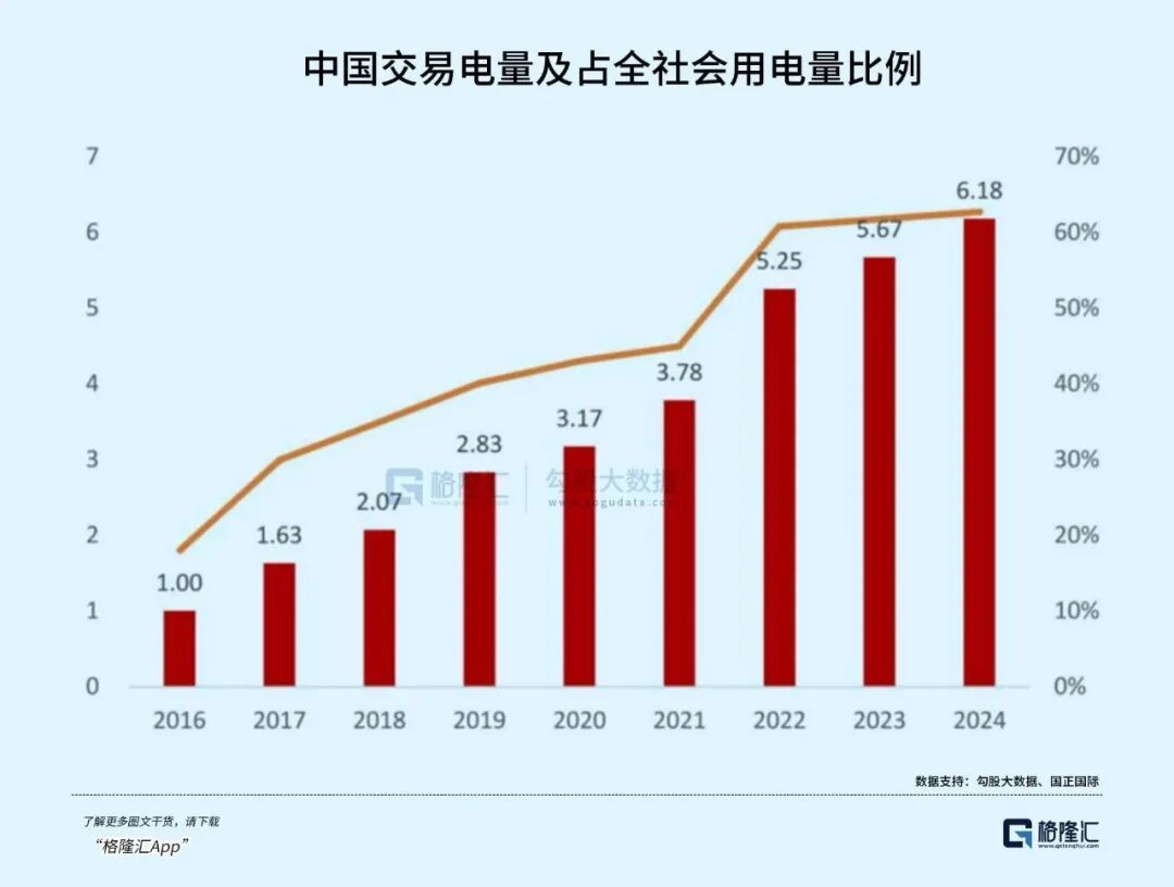 其二,工业用电成本过高。居民电价长期稳定,实则由工业用户补贴,工业电价比居民高两倍多,高耗能企业电费占生产成本比重可达30%。2020年前工业用户市场化交易占比不足30%,难以根据市场调整用电成本。2024年《电力市场运行基本规则》强制工业用户全面入市,当年市场化交易电量突破6.18万亿千瓦时,占比达62.7%。