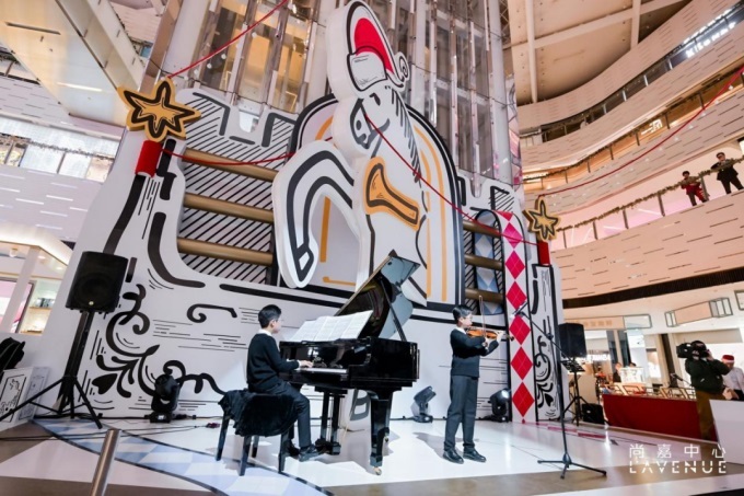 亮灯仪式当晚,乐动未来青少年器乐大赛的获奖小音乐家们现场演奏,温暖的音符唤醒了冬夜的氛围。随后,魔法师与兔子Lapin互动登场,以轻盈的舞姿和光影节奏点亮主题场景,生动诠释了尚嘉中心对「优雅运动」理念在观演场景中的全新演绎。