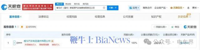 从股东构成来看,智马行(温州)新能源汽车销售有限责任公司由威马汽车制造温州有限公司全额控股。
