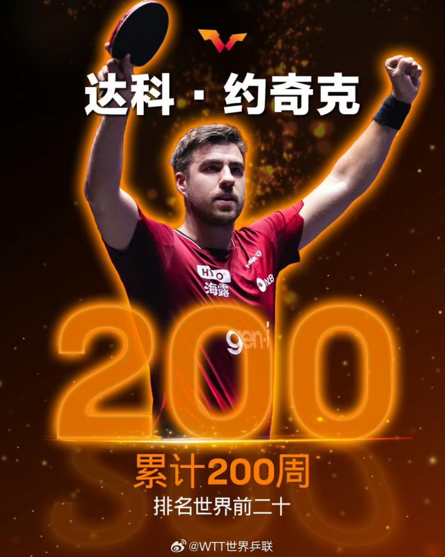 斯洛文尼亚名将达科·约尔吉奇则是另一位纪录创造者,他的男单世界前二十累计周数突破了200周。作为国际赛场上实力强劲的欧洲选手之一,目前世界排名第14位的约尔吉奇本赛季表现不俗:先后打进WTT斯科普里挑战赛和WTT卢布尔雅那球星挑战赛四强,还在WTT美国大满贯、WTT欧洲大满贯中闯入八强,此外在WTT阿拉木图挑战赛、WTT蒙彼利埃冠军赛、WTT马斯喀特球星挑战赛也都进入了四分之一决赛阶段。