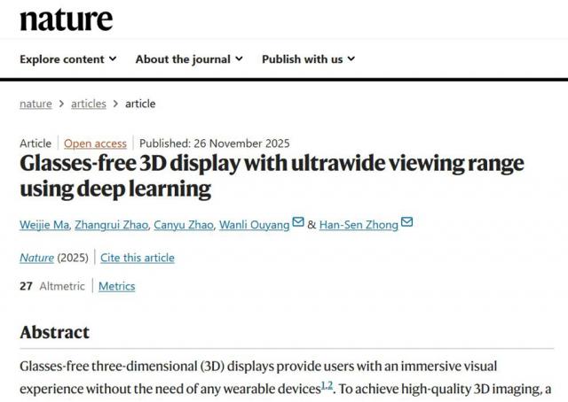 26岁上海博士生携AI裸眼3D成果登《自然》,突破半世纪技术瓶颈