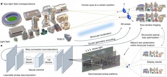 该“计算为中心”的系统,首次在无辅助设备的桌面级尺寸上实现100度超宽视场角,分辨率1920×1080、刷新率超50帧/秒。视场内观看者任意移动,均能获得正确运动视差,且支持人眼自然聚焦,避免眩晕的同时呈现清晰自然的3D效果。