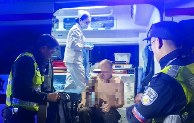 执勤民警立刻向县局指挥中心报告情况,同时联系医疗和消防部门,启动紧急搜救。经过十多分钟搜寻,终于发现男子躲在河边的水葫芦下面。民警和医护人员劝说他上岸无果,消防人员便用橡皮艇、救生圈展开救援。当时气温很低,男子在水里冻得直发抖,早已没了逃跑的力气,最终被救上岸送往医院治疗。