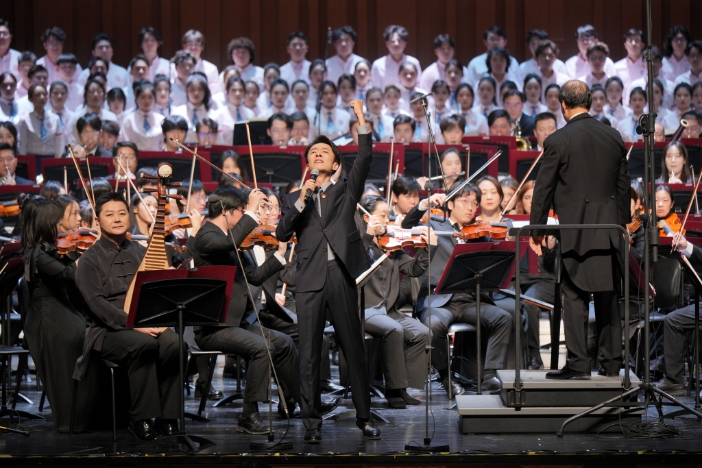 朗诵者杨杨的道白,与赵勇、陈家坡、张曦、顾文梦等四位上音师生的领唱相互配合,相得益彰,将《黄河大合唱》的情感表达推向高潮。
