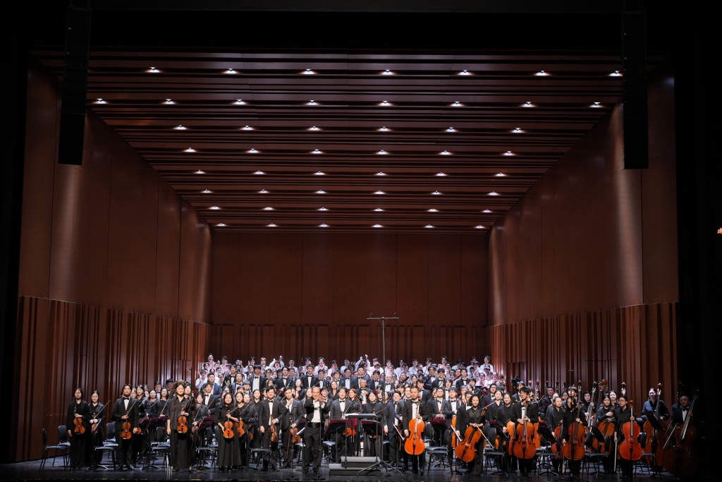 指挥家张国勇执棒上音交响乐团与交响管乐团,邹栩翔指挥上音合唱团和果洛中学合唱团,从“黄河船夫曲”到“怒吼吧,黄河”,音乐层层递进,气势磅礴,震撼人心。